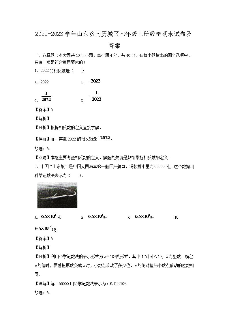 【文檔預覽】 無憂考網(wǎng)整理發(fā)布2022-2023學年山東濟南歷城區(qū)七年級上冊數(shù)學期末試卷及答案(Word版),前五頁預覽如下: