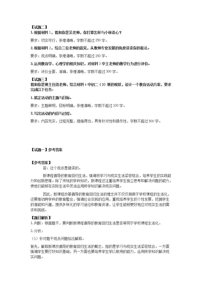 【文檔預(yù)覽】 無憂考網(wǎng)整理發(fā)布2023年8月全國(guó)事業(yè)單位聯(lián)考D類綜合應(yīng)用能力(中學(xué))真題及答案(教師崗)(Word版),前五頁預(yù)覽如下: