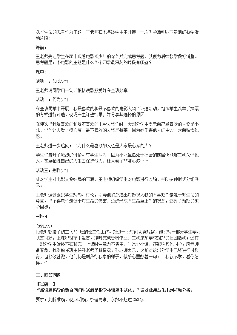2023年8月全國(guó)事業(yè)單位聯(lián)考D類綜合應(yīng)用能力(中學(xué))真題及答案(教師崗)(Word版)