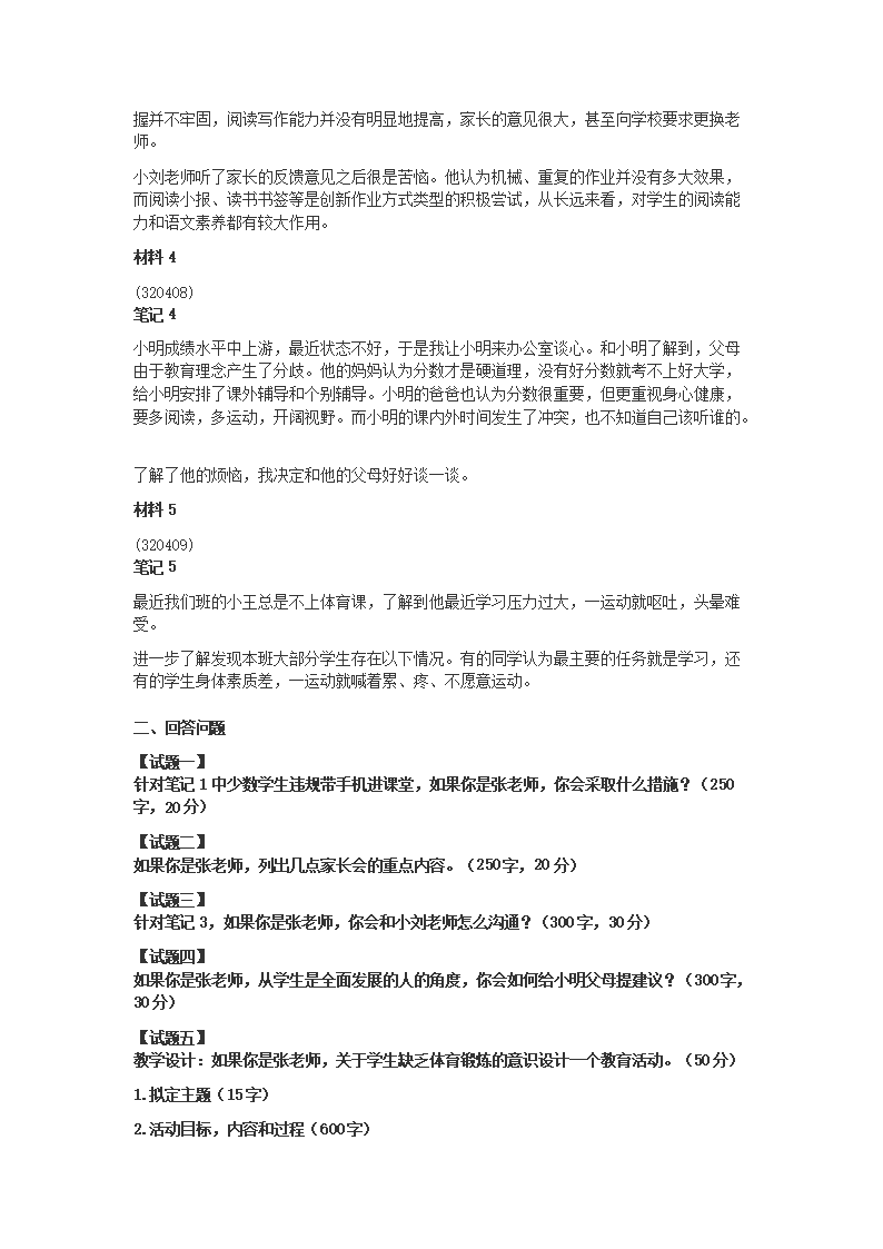 2022年5月全國事業(yè)單位聯(lián)考D類綜合應(yīng)用能力(中學(xué))真題及答案(教師崗)(Word版)