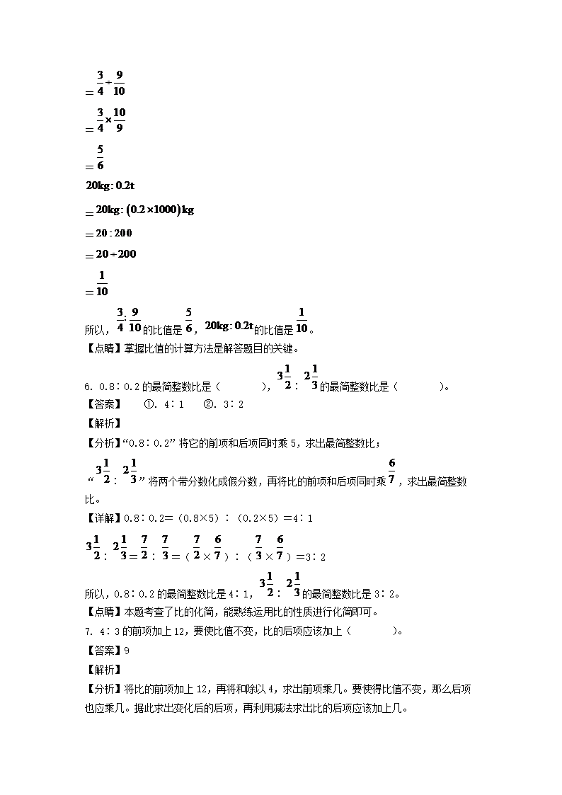 2020-2021年山東省臨沂市蘭陵縣六年級上冊期末數(shù)學(xué)試卷及答案(人教版)(Word版)