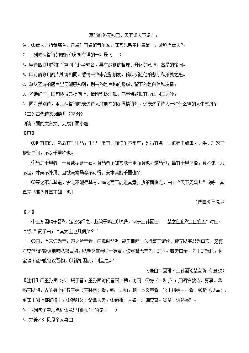 - 2023-2024學(xué)年廣東省韶關(guān)市樂昌市八年級下學(xué)期期末語文試題及答案