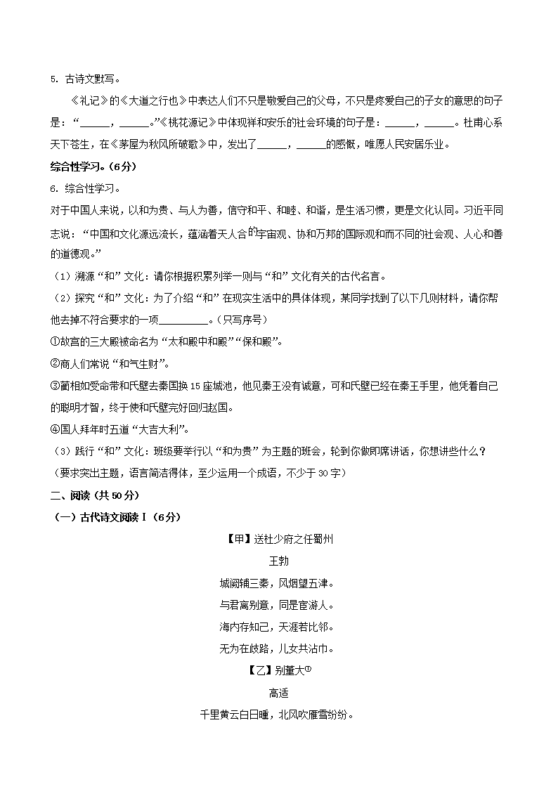 - 2023-2024學(xué)年湖北省孝感市漢川市八年級下學(xué)期期末語文試題及答案