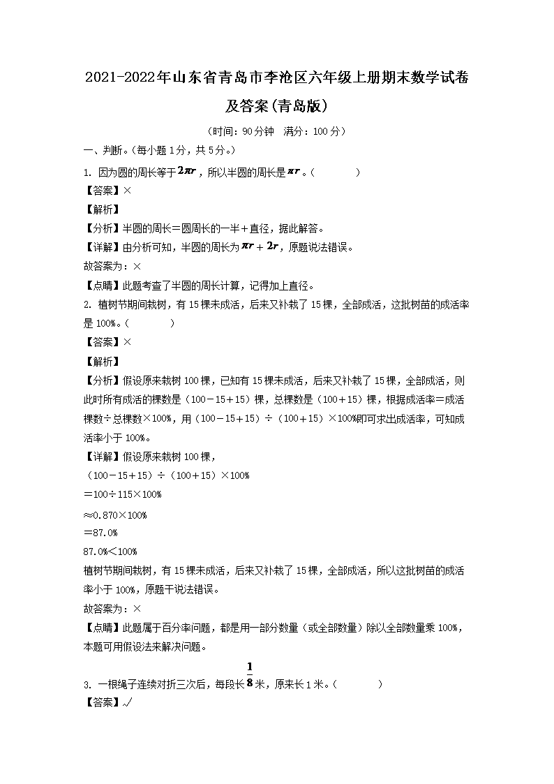 【文檔預(yù)覽】 無憂考網(wǎng)整理發(fā)布2021-2022年山東省青島市李滄區(qū)六年級上冊期末數(shù)學(xué)試卷及答案(青島版)(Word版),前五頁預(yù)覽如下: