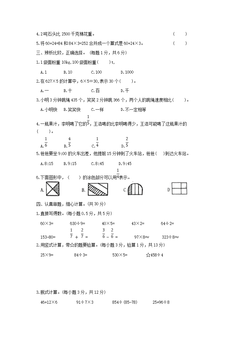 - 2022-2023學(xué)年山東省青島市李滄區(qū)小學(xué)三年級(jí)下冊(cè)數(shù)學(xué)期中試題及答案