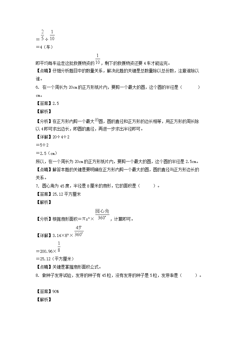 - 2021-2022學年山東省臨沂市郯城縣六年級上冊期末數(shù)學試卷及答案(人教版)