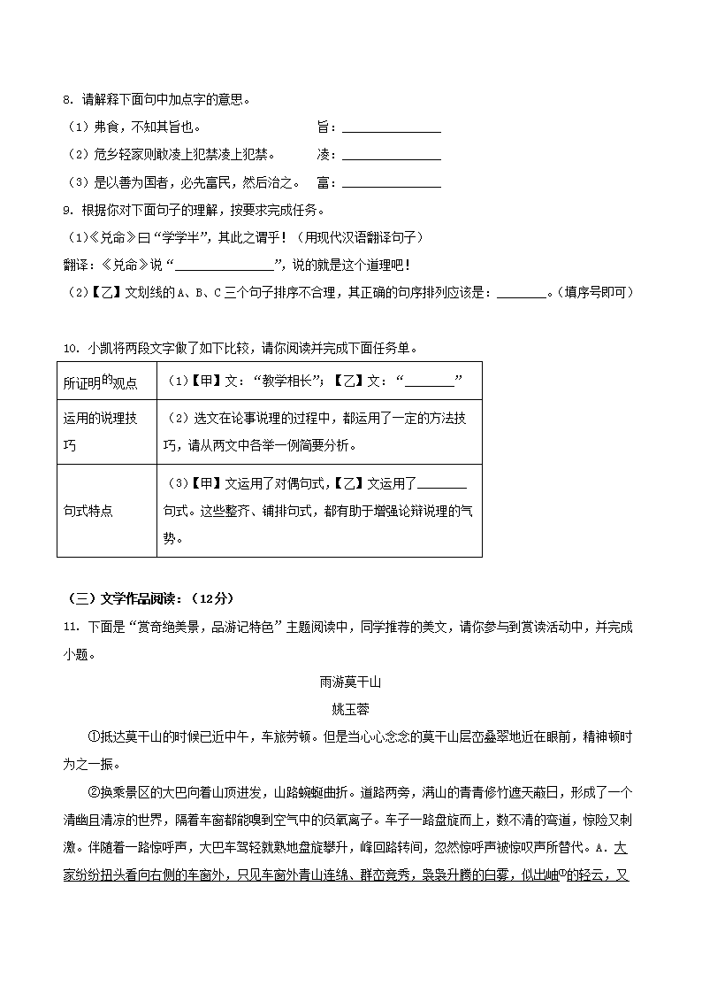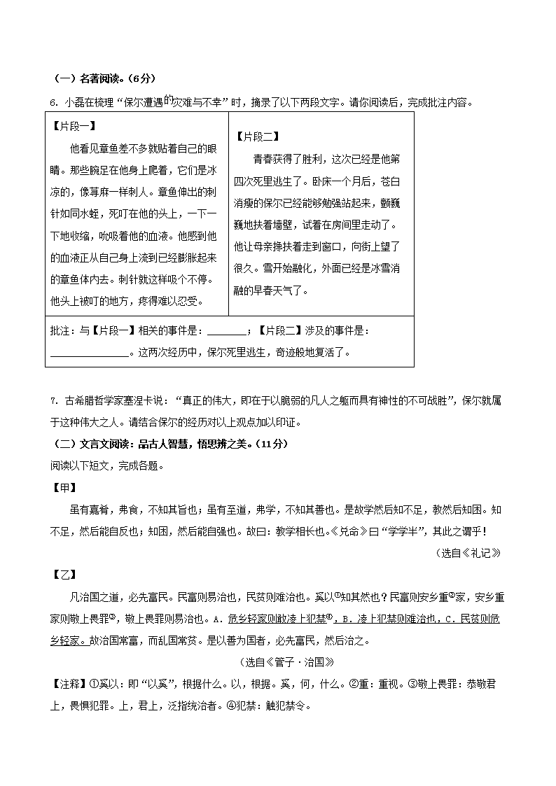 - 2023-2024學(xué)年山東省濟(jì)寧市曲阜市八年級(jí)下學(xué)期期末語(yǔ)文試題及答案