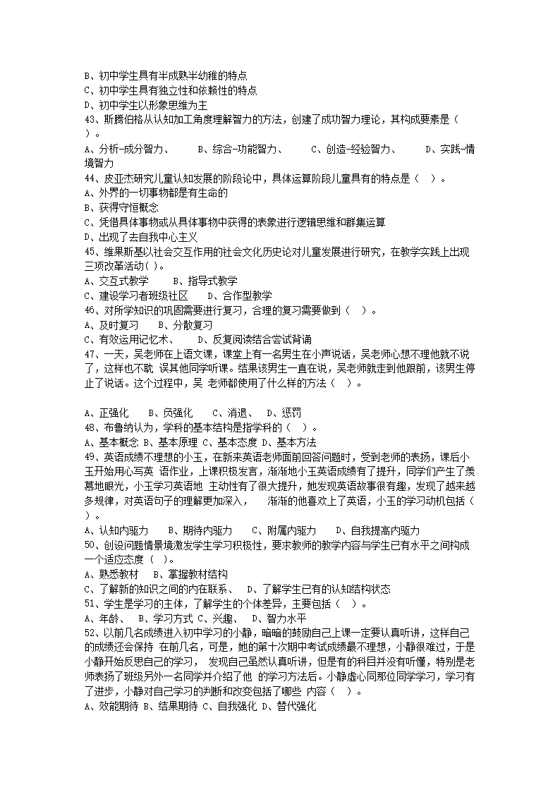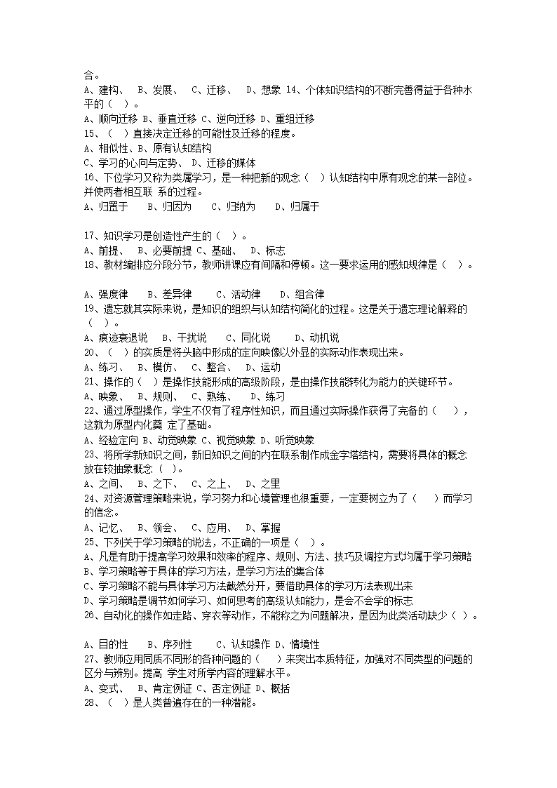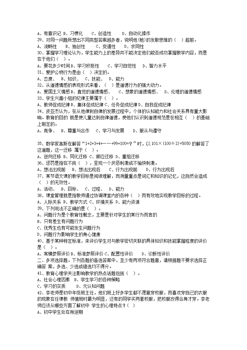【文檔名稱】 2018年10月內(nèi)蒙古赤峰教師招聘考試教育心理學真題及答案(Word版).doc