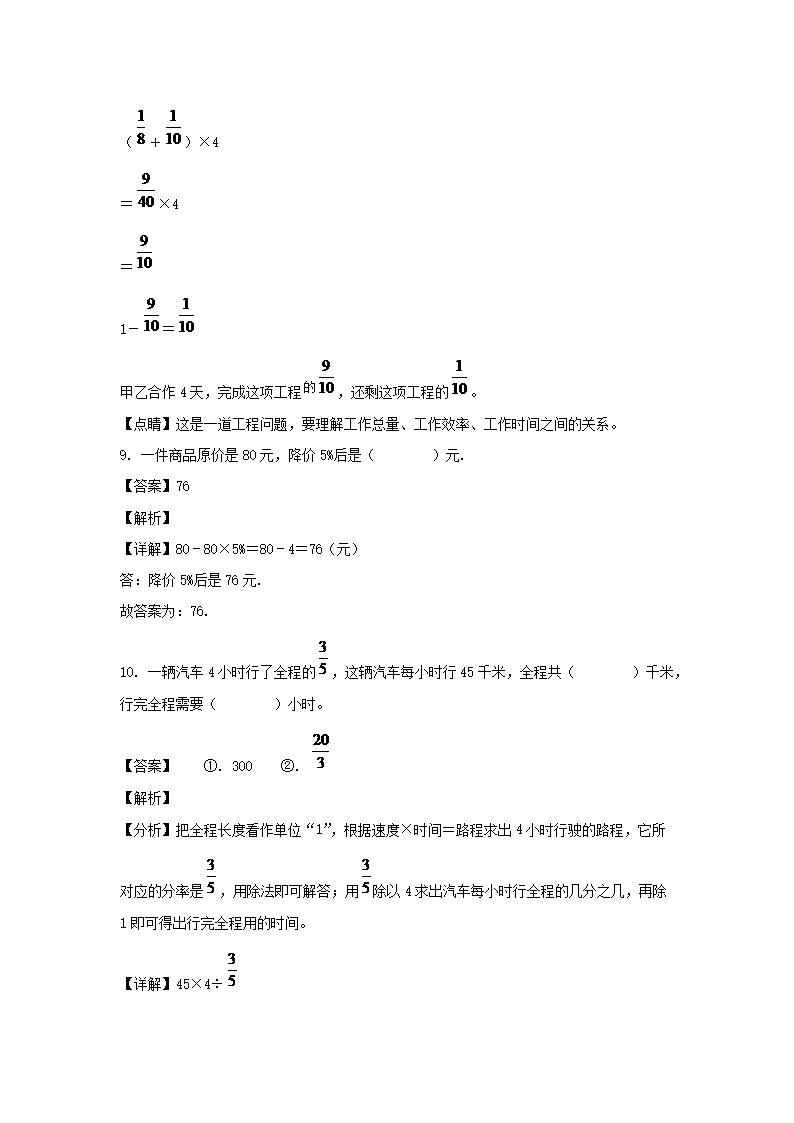 - 2020-2021年山東省臨沂市沂南縣六年級(jí)上冊(cè)期末數(shù)學(xué)試卷及答案(人教版)