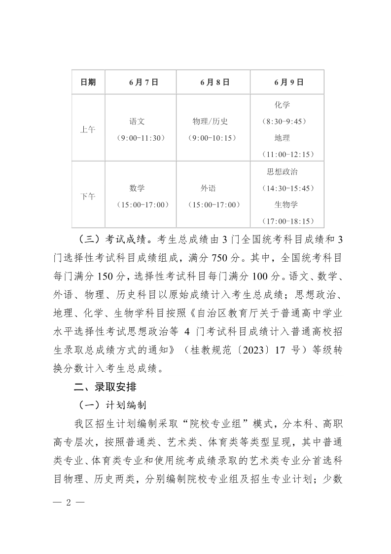 根據(jù)教育部和我區(qū)普通高校招生考試工作安排部署,為做好我區(qū)2025年普通高校招生考試和錄取工作,我廳制定了《廣西2025年普通高校招生考試和錄取工作方案》,現(xiàn)印發(fā)給你們,請抓好貫徹落實。
