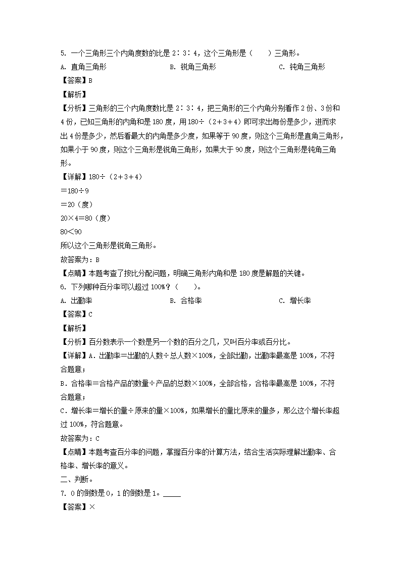 - 查看小學(xué)六年級全部真題>>