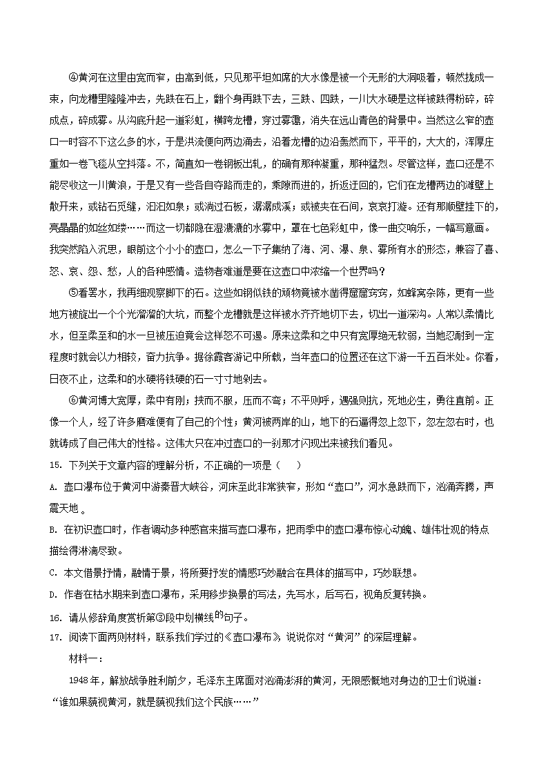 - 2023-2024學(xué)年甘肅省平?jīng)鍪嗅轻紖^(qū)八年級下學(xué)期期末語文試題及答案