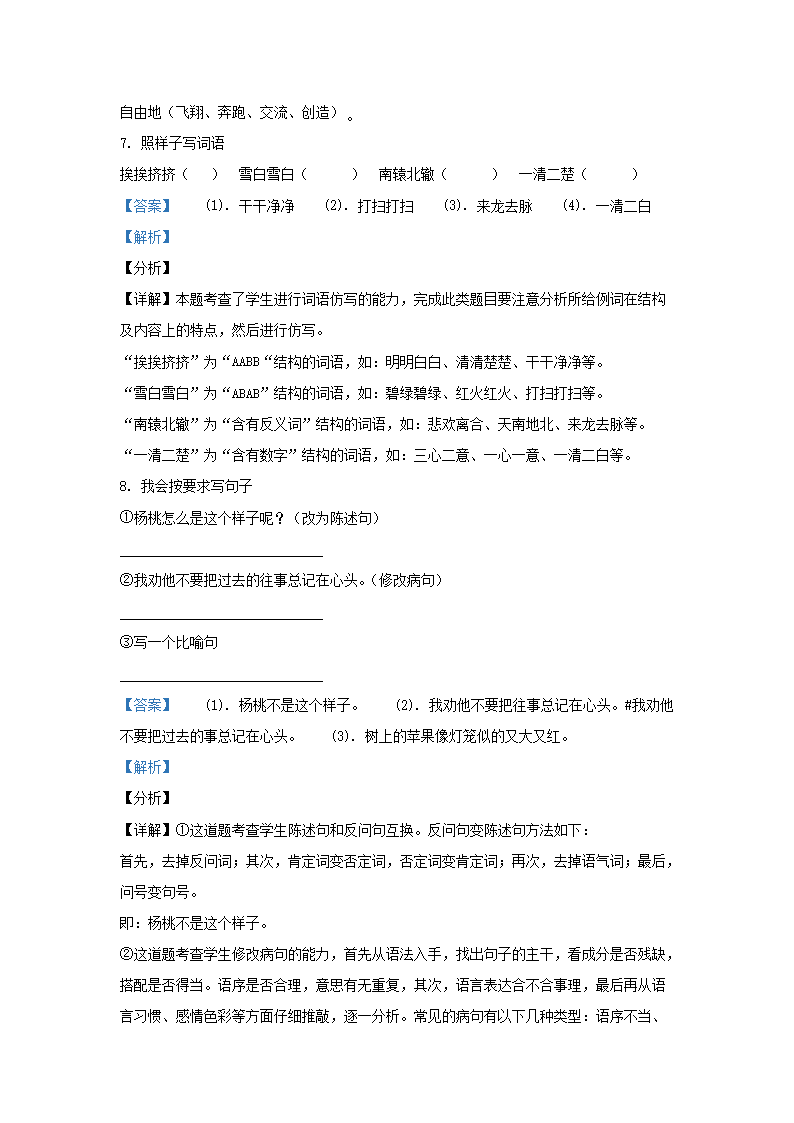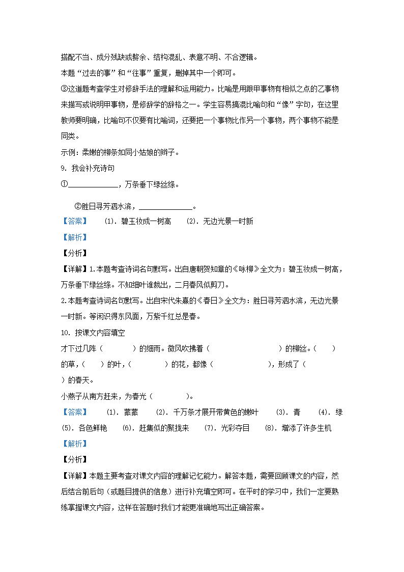 - 2020-2021學(xué)年天津市部分區(qū)小學(xué)三年級下冊語文期末試題及答案
