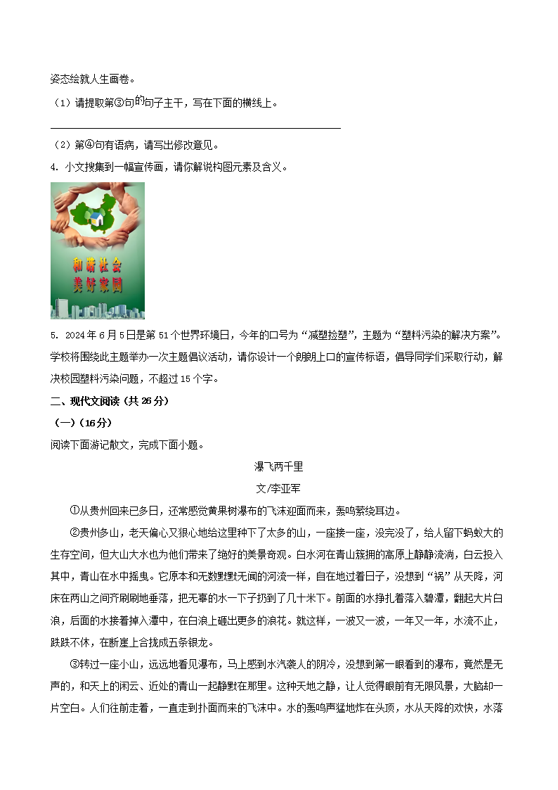 - 2023-2024學(xué)年貴州省銅仁市八年級下學(xué)期期末語文試題及答案
