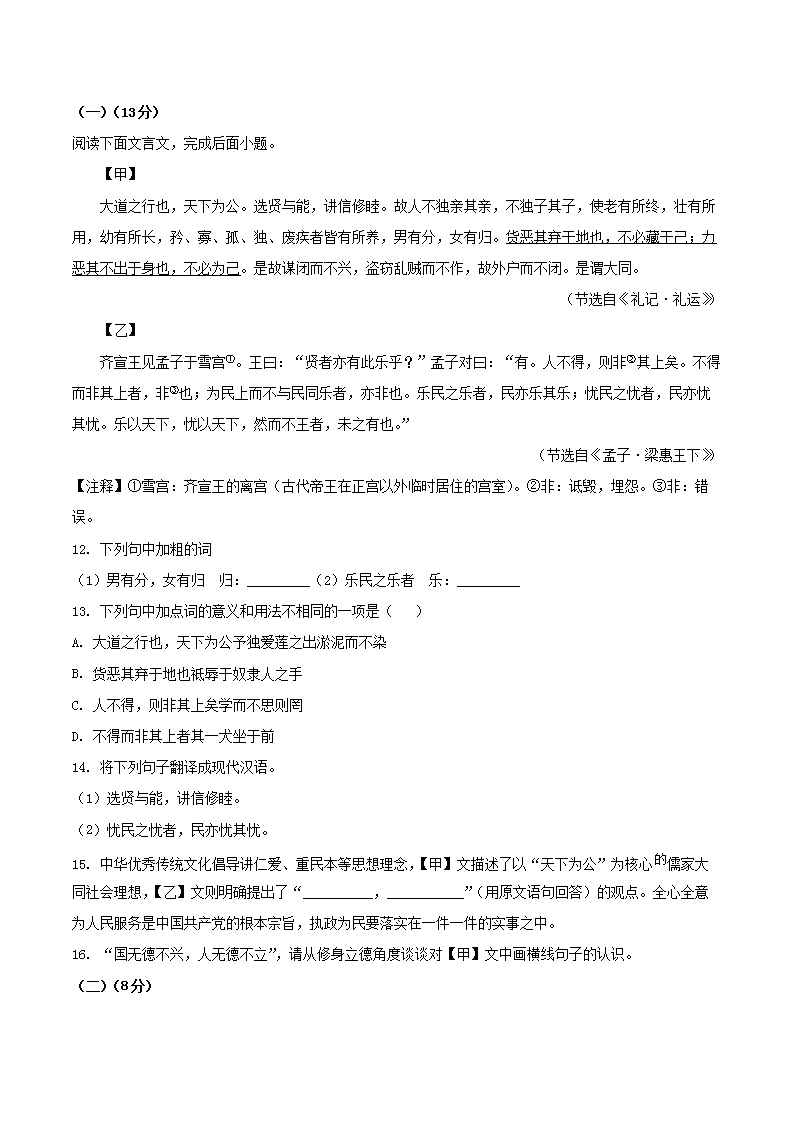時(shí)間:2025-06-06 17:41:00 來源:無憂考網(wǎng) [字體:小 中 大]【文檔名稱】 2023-2024學(xué)年黑龍江省綏化市明水縣八年級下學(xué)期期末語文試題及答案(Word版).doc