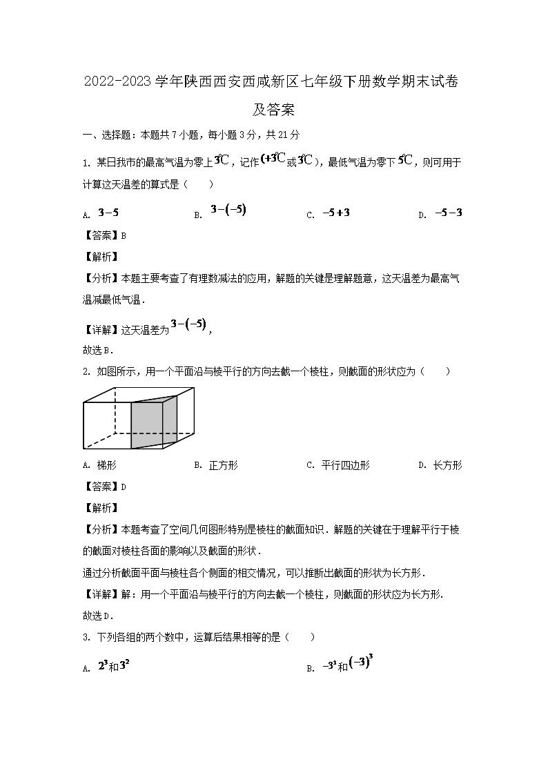 2022-2023學(xué)年陜西西安西咸新區(qū)七年級(jí)下冊(cè)數(shù)學(xué)期末試卷及答案(Word版)