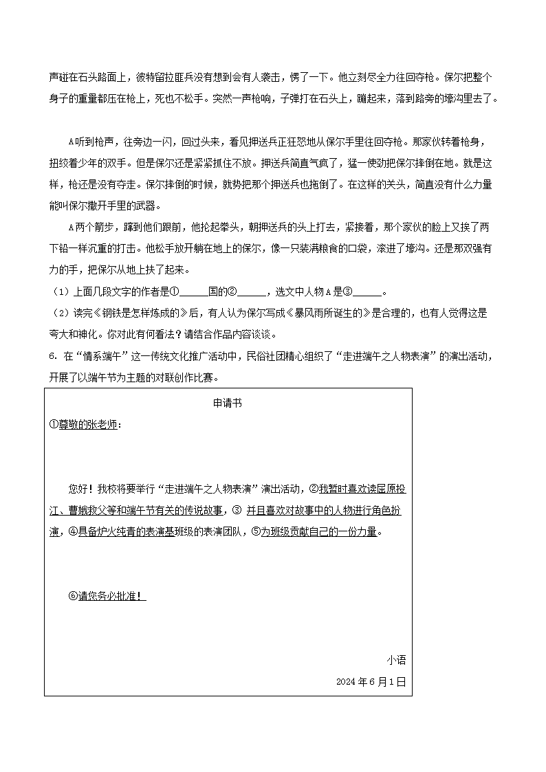 - 2023-2024學(xué)年云南省普洱市八年級(jí)下學(xué)期期末語(yǔ)文試題及答案