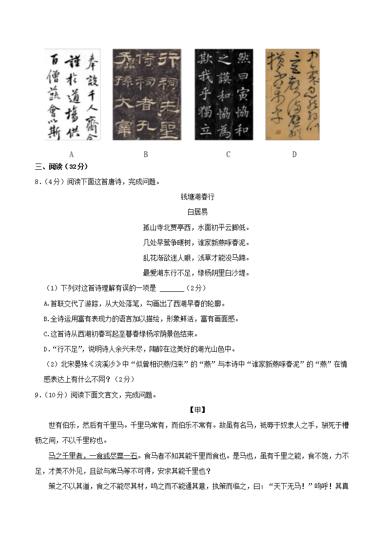【文檔預(yù)覽】 無憂考網(wǎng)整理發(fā)布2023-2024學(xué)年云南省普洱市八年級下學(xué)期期末語文試題及答案(Word版),前五頁預(yù)覽如下: