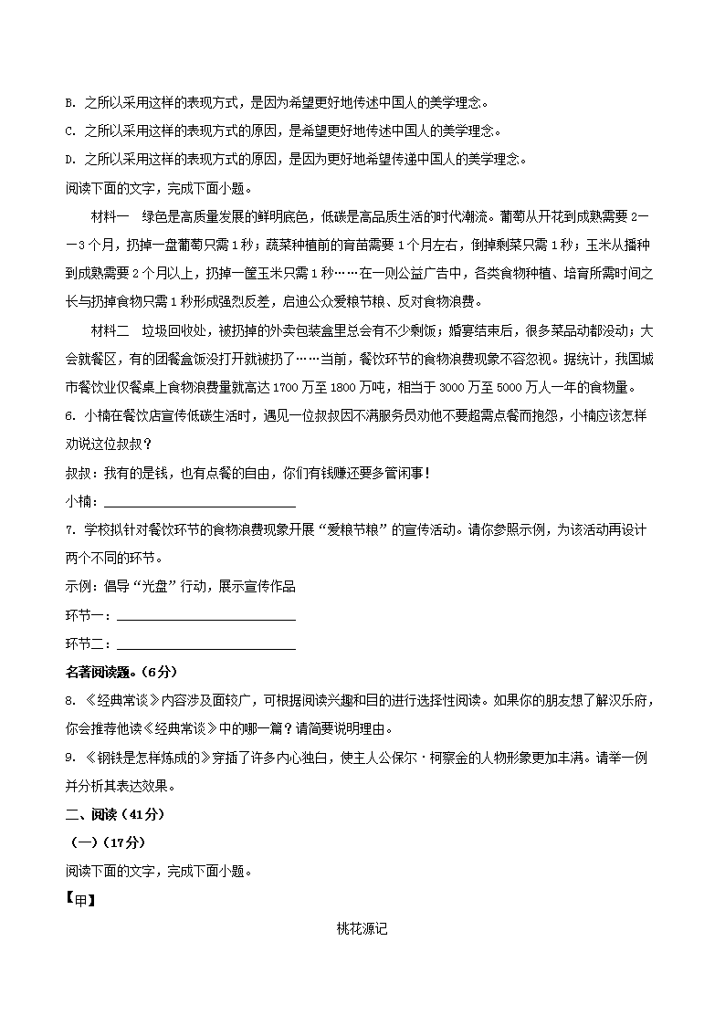 - 2023-2024學年云南省普洱市八年級下學期期末語文試題及答案