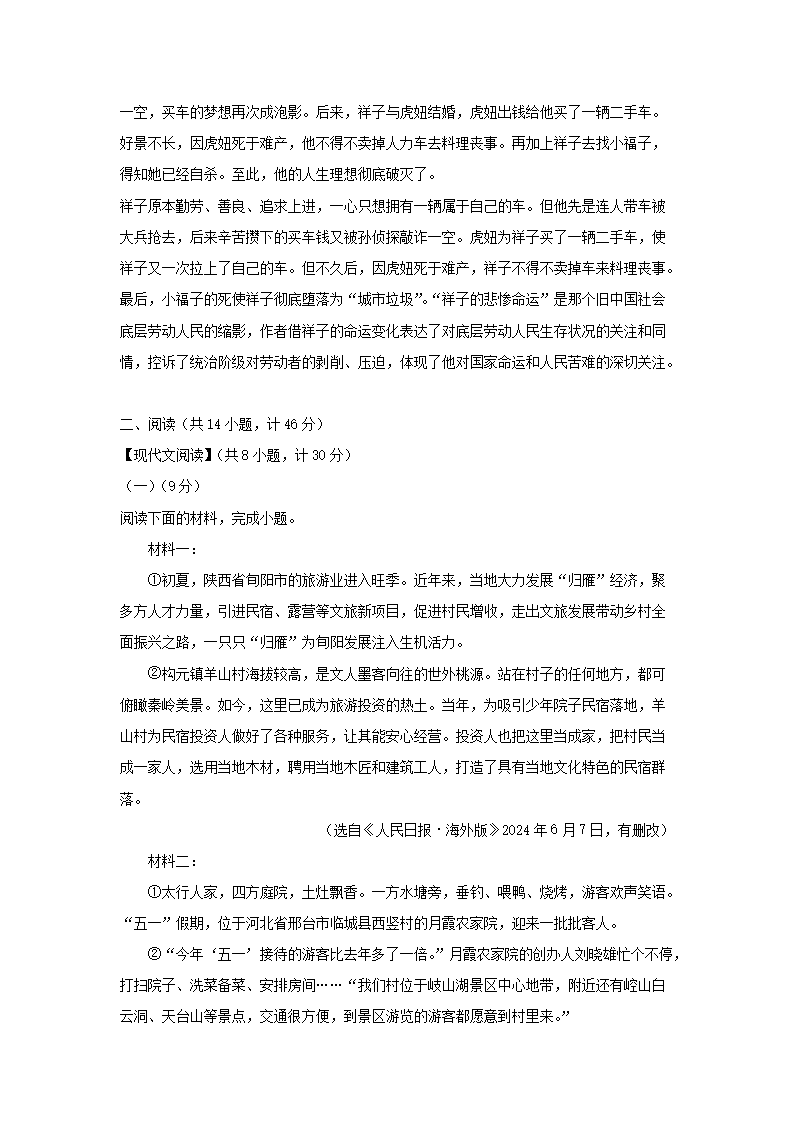 【文檔名稱】 2024-2025學(xué)年陜西西安七年級下冊語文3月月考試卷及答案(Word版).doc