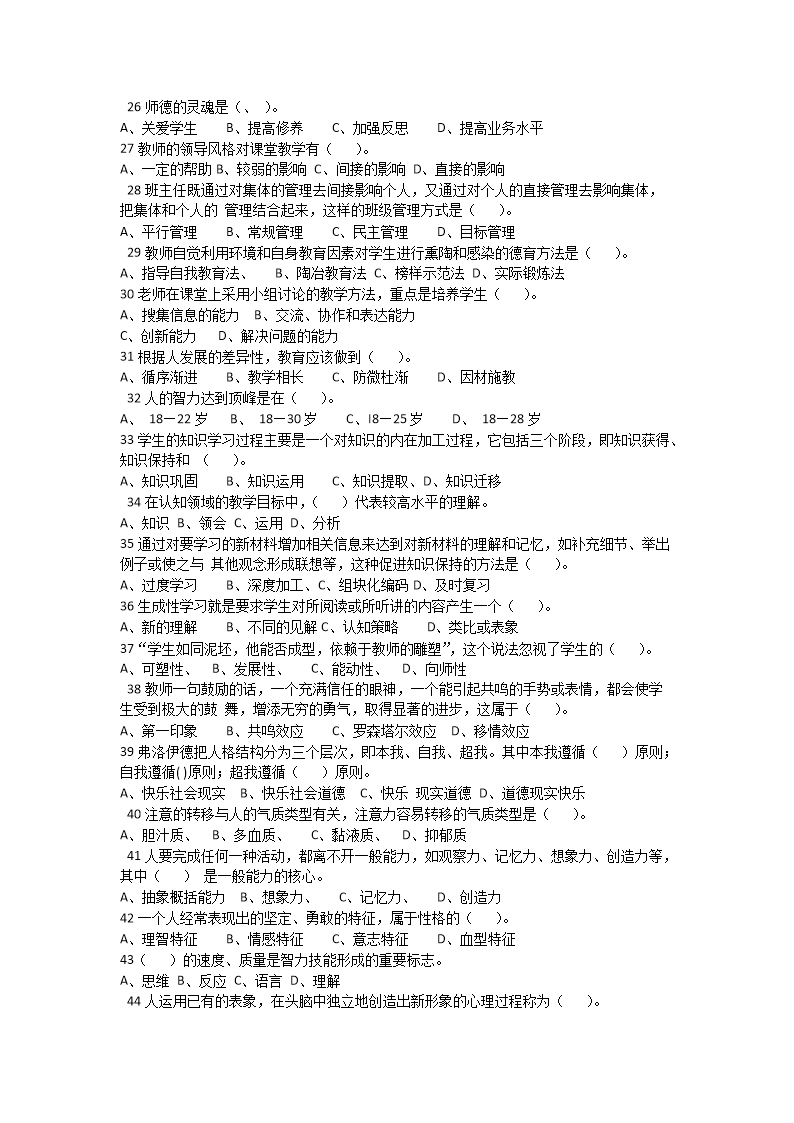 時(shí)間:2025-06-10 17:39:00 來源:無憂考網(wǎng) [字體:小 中 大]【文檔名稱】 2014年湖南衡陽教師招聘考試中學(xué)教育理論綜合知識(shí)真題及答案(Word版).doc