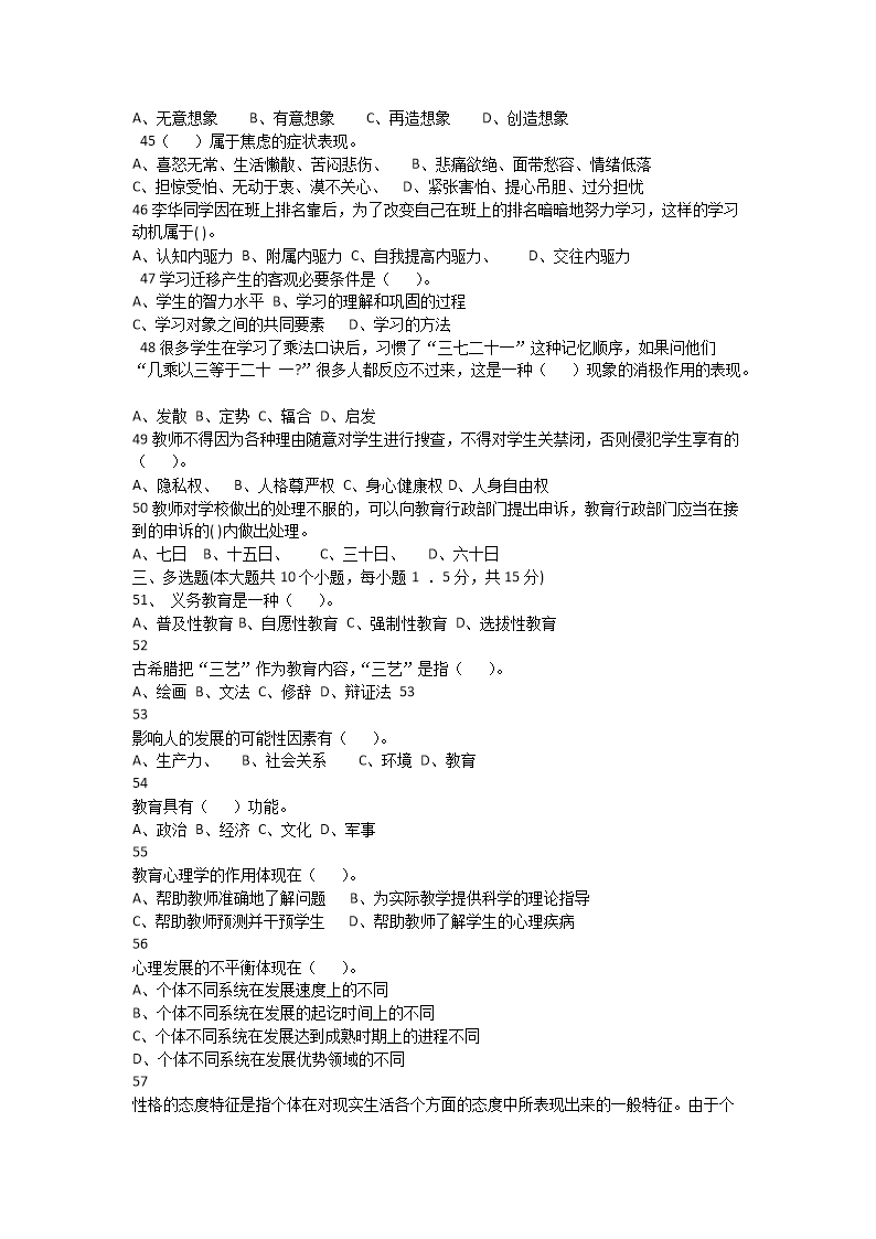 【文檔預(yù)覽】 無憂考網(wǎng)整理發(fā)布2014年湖南衡陽教師招聘考試中學(xué)教育理論綜合知識(shí)真題及答案(Word版),前五頁預(yù)覽如下: