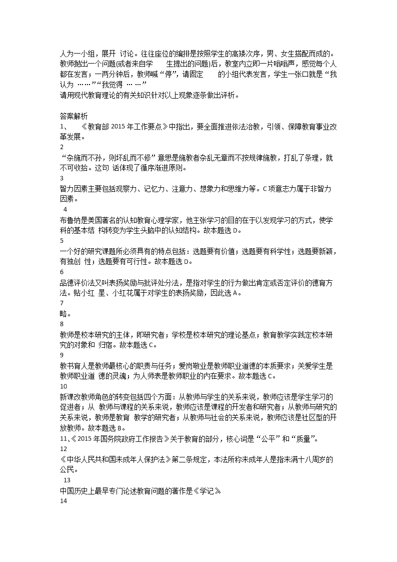 【文檔預(yù)覽】 無憂考網(wǎng)整理發(fā)布2015年湖南長沙教師招聘考試中學(xué)教育理論綜合知識真題及答案(Word版),前五頁預(yù)覽如下: