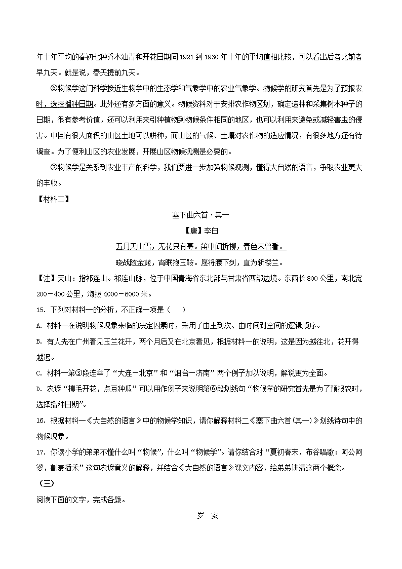 - 2023-2024學(xué)年甘肅省定西市岷縣八年級(jí)下學(xué)期期末語(yǔ)文試題及答案