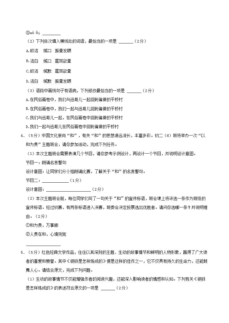 - 2023-2024學(xué)年甘肅省定西市岷縣八年級(jí)下學(xué)期期末語(yǔ)文試題及答案