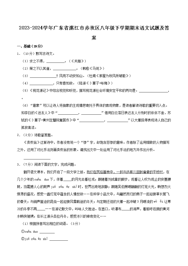 2023-2024學(xué)年廣東省湛江市赤坎區(qū)八年級(jí)下學(xué)期期末語(yǔ)文試題及答案(Word版)