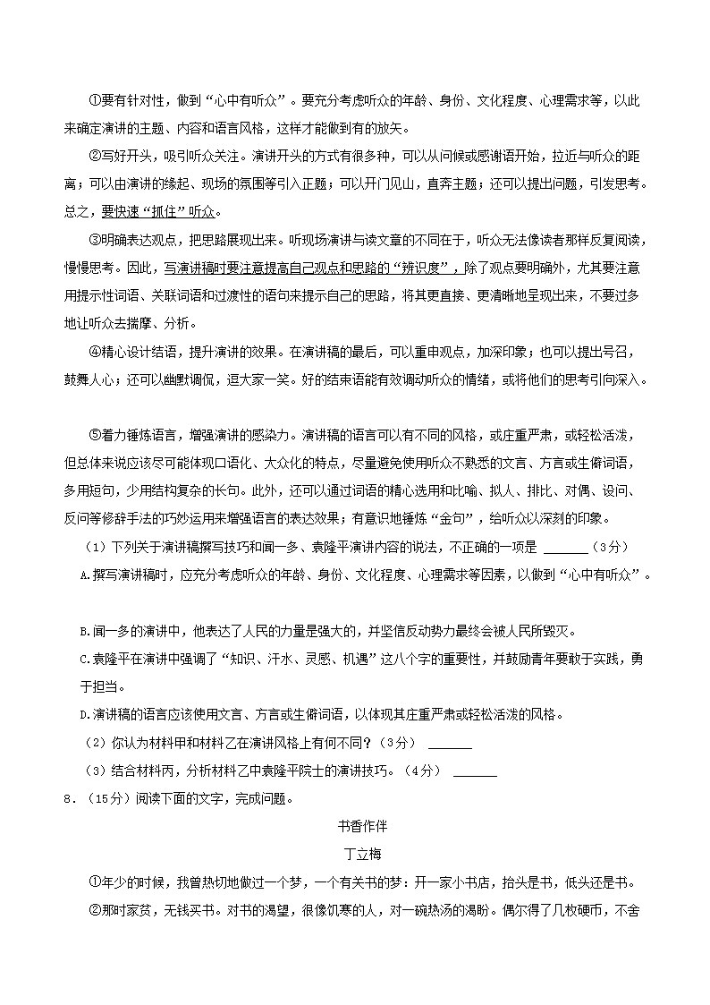 - 2023-2024學(xué)年廣東省廣州市越秀區(qū)八年級(jí)下學(xué)期期末語(yǔ)文試題及答案
