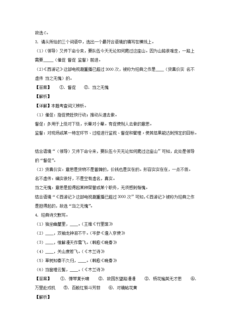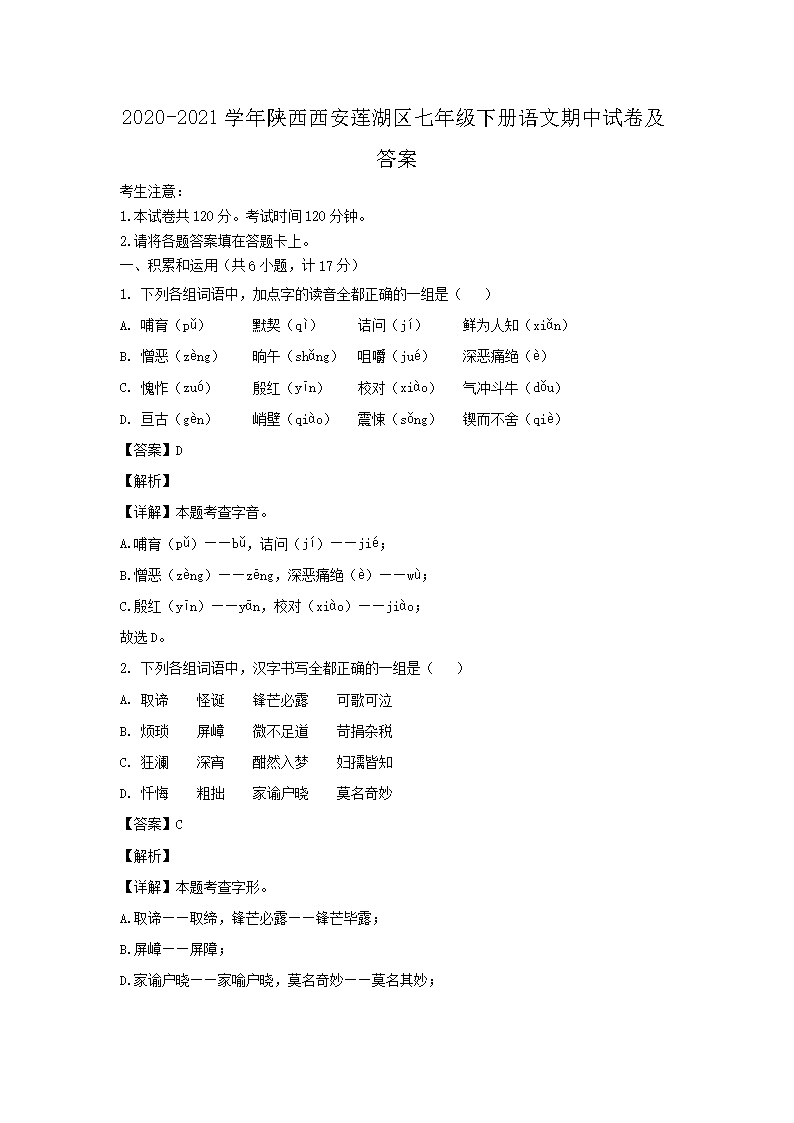【文檔名稱】 2020-2021學年陜西西安蓮湖區(qū)七年級下冊語文期中試卷及答案(Word版).doc