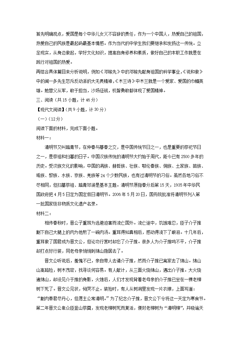 - 2022-2023學(xué)年重慶巴南區(qū)七年級下冊語文期末試卷及答案