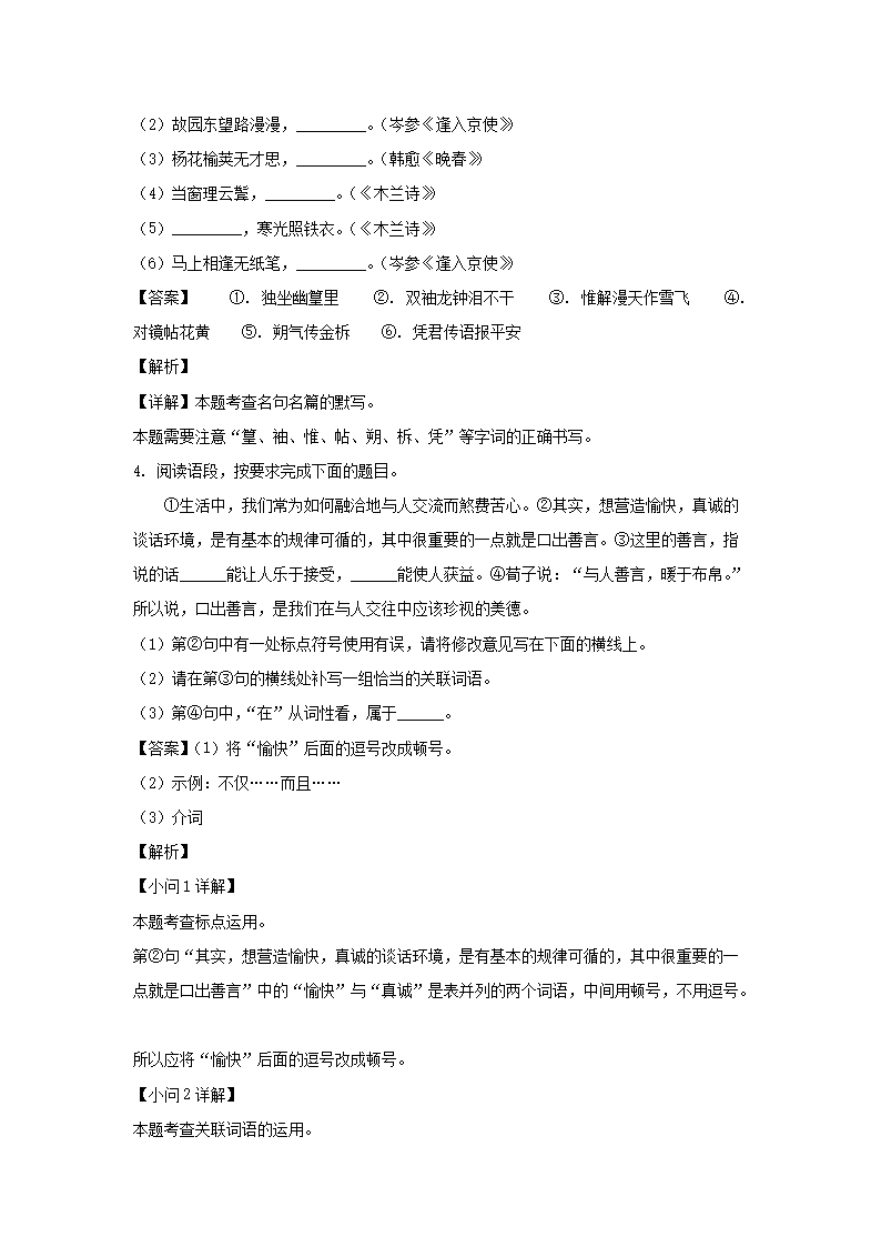 - 2021-2022學(xué)年重慶沙坪壩區(qū)七年級下冊語文第一次月考試卷及答案