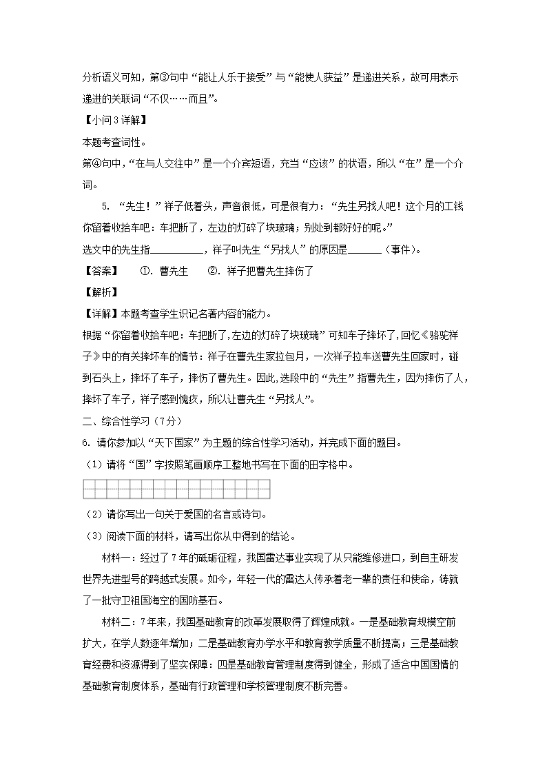- 2022-2023學(xué)年重慶江津區(qū)七年級下冊語文5月月考試卷及答案