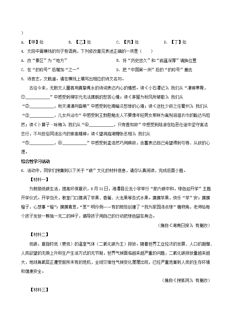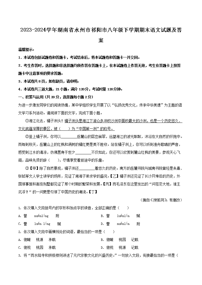 時間:2025-06-12 17:32:00 來源:無憂考網(wǎng) [字體:小 中 大]【文檔名稱】 2023-2024學(xué)年湖南省永州市祁陽市八年級下學(xué)期期末語文試題及答案(Word版).doc