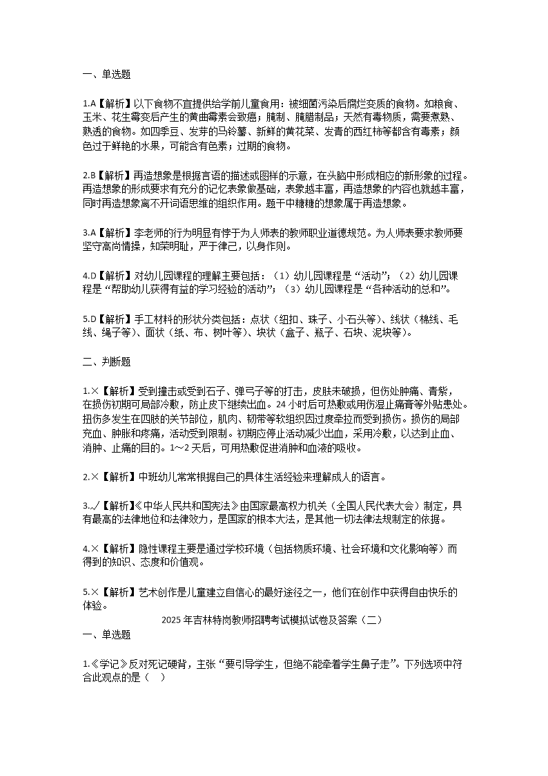 【文檔預(yù)覽】 無(wú)憂考網(wǎng)整理發(fā)布2025年吉林特崗教師招聘考試模擬試卷及答案(Word版),前五頁(yè)預(yù)覽如下: