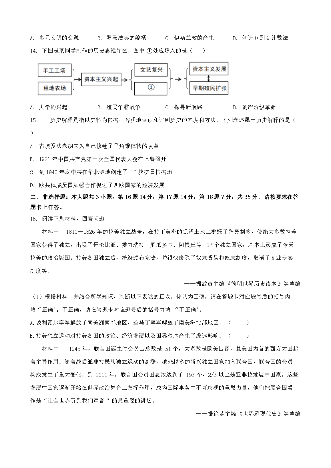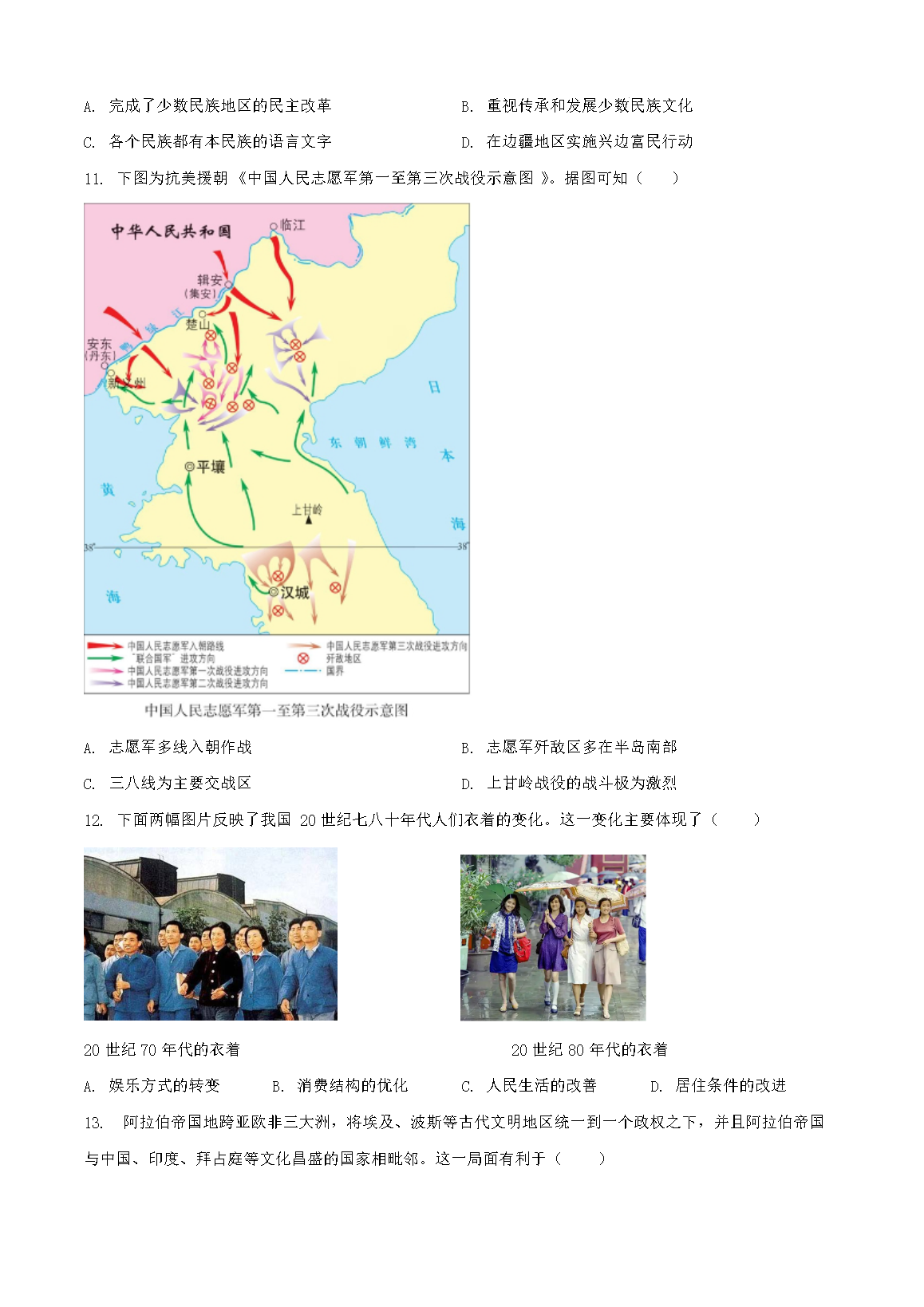 【文檔名稱】 2025年重慶雙橋中考歷史試題及答案(Word版).doc