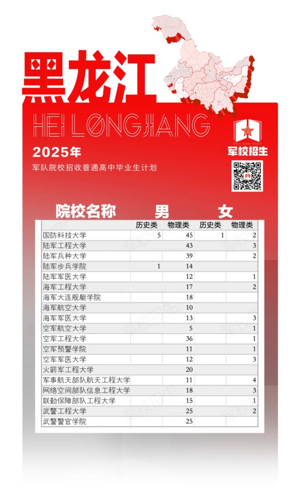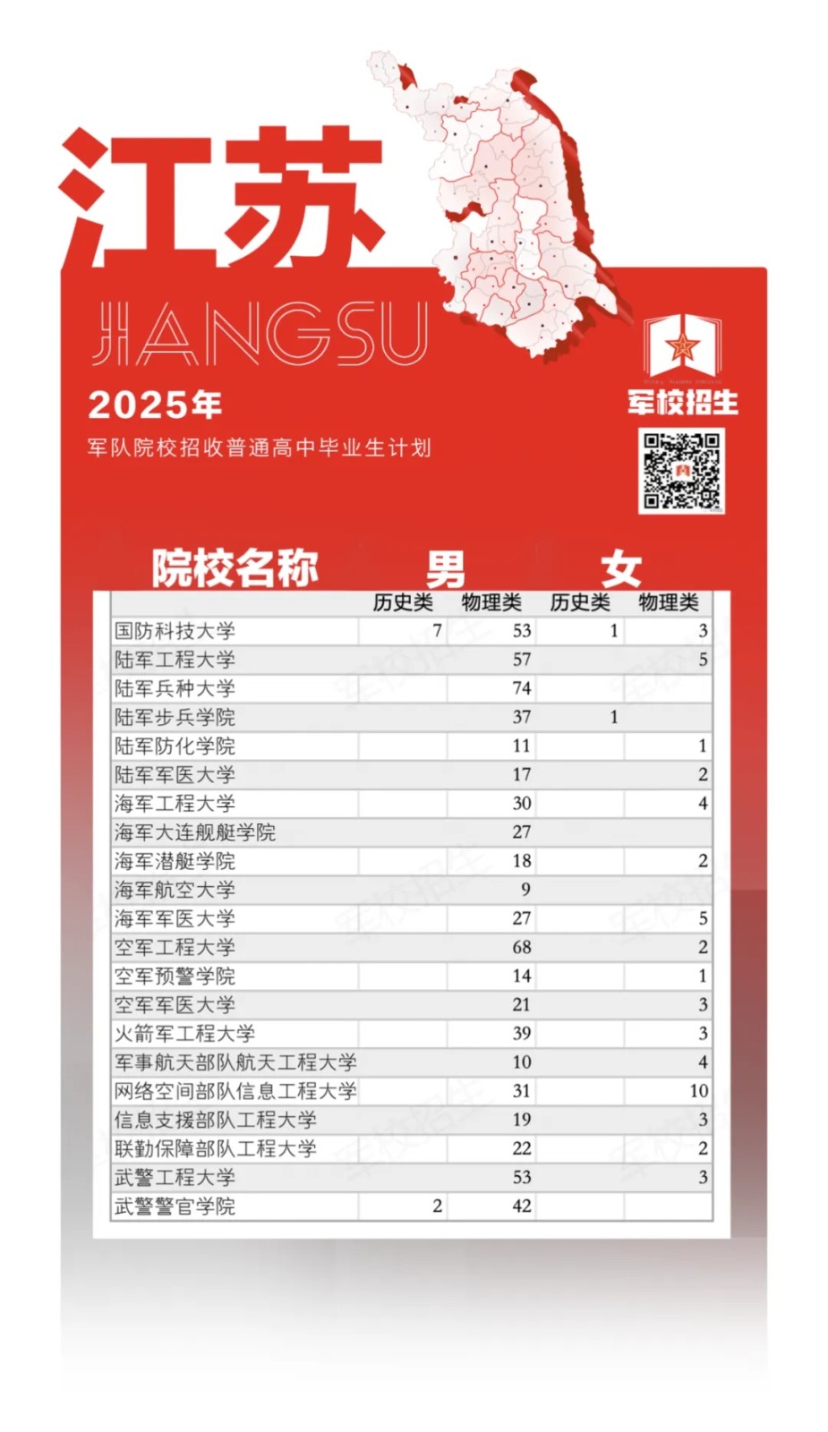 憂考網(wǎng)從軍校招生公眾號了解到,2025年軍隊院校招收普通高中畢業(yè)生計劃已公布,具體如下:
