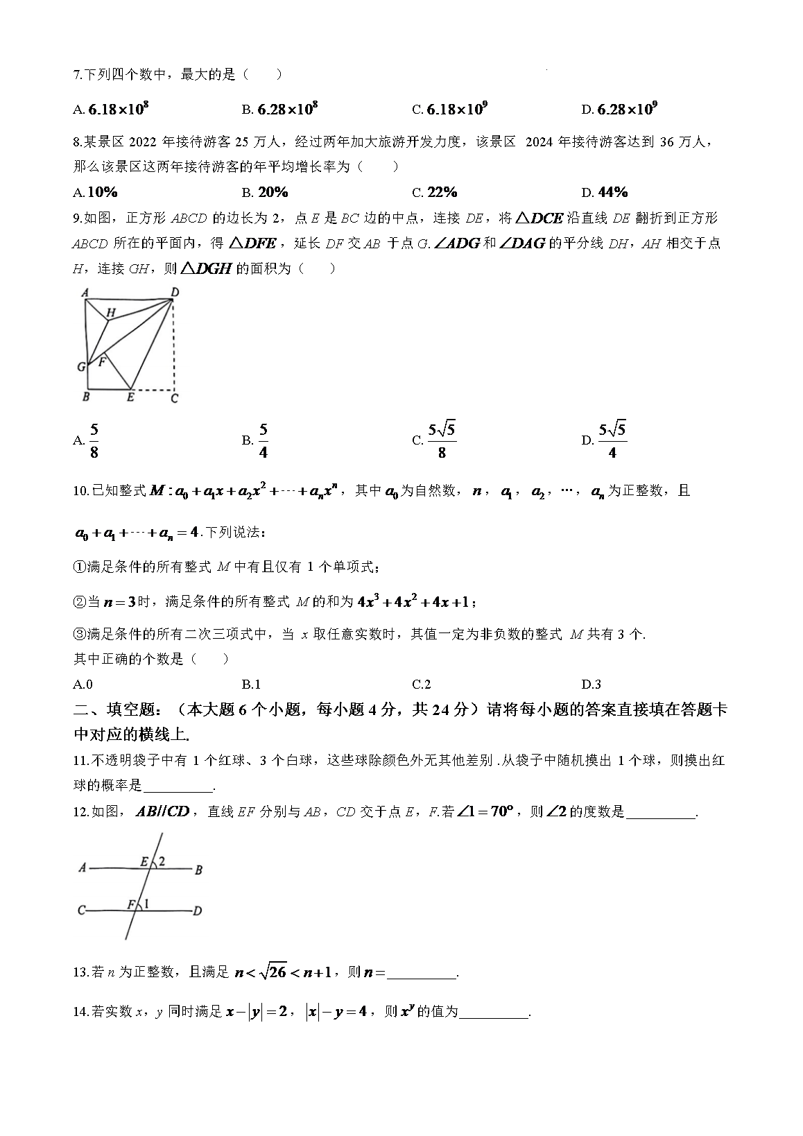 【文檔名稱】 2025年重慶萬州中考數(shù)學試題及答案(Word版).doc