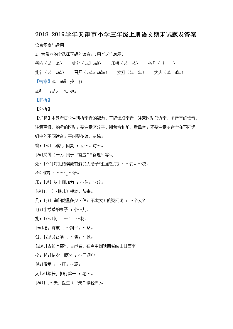 【文檔名稱】 2018-2019學(xué)年天津市小學(xué)三年級上冊語文期末試題及答案(Word版).doc