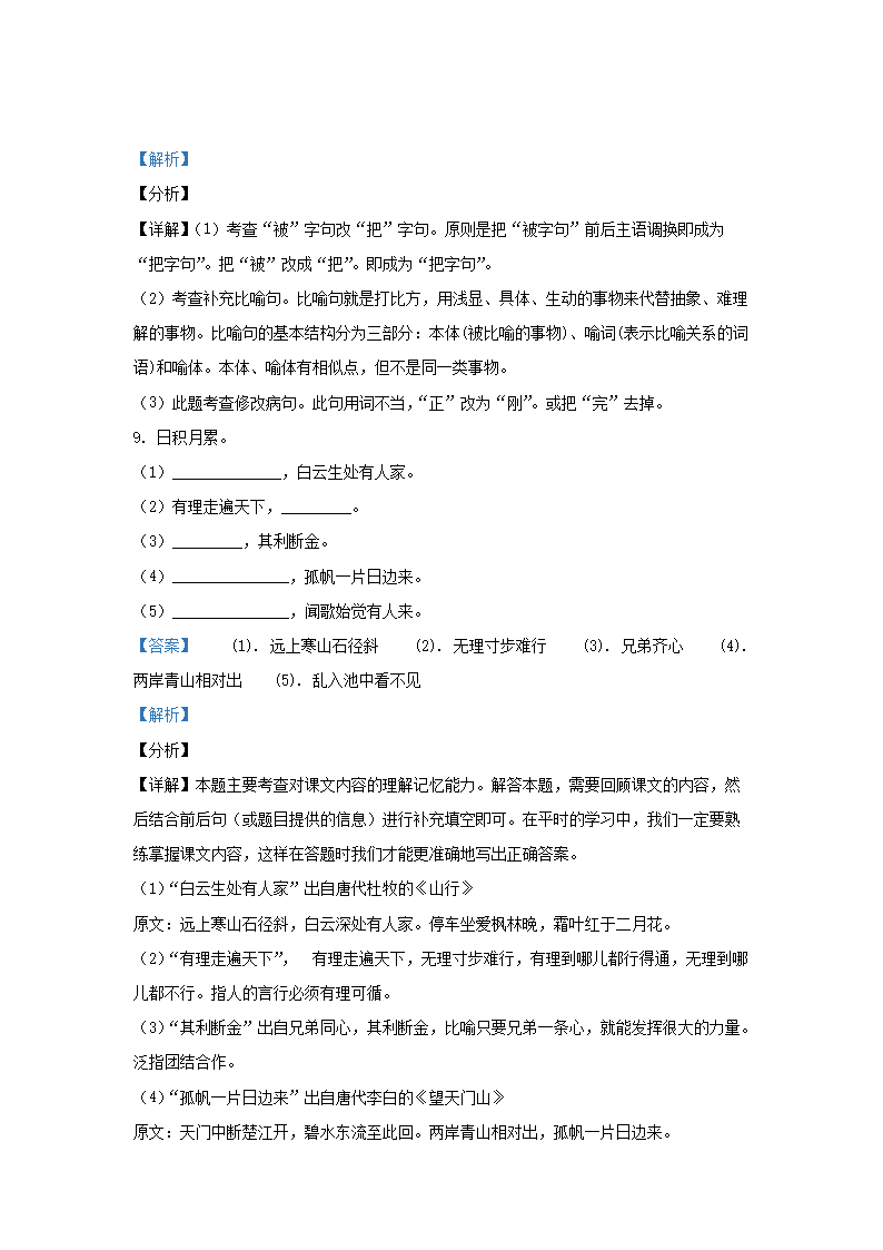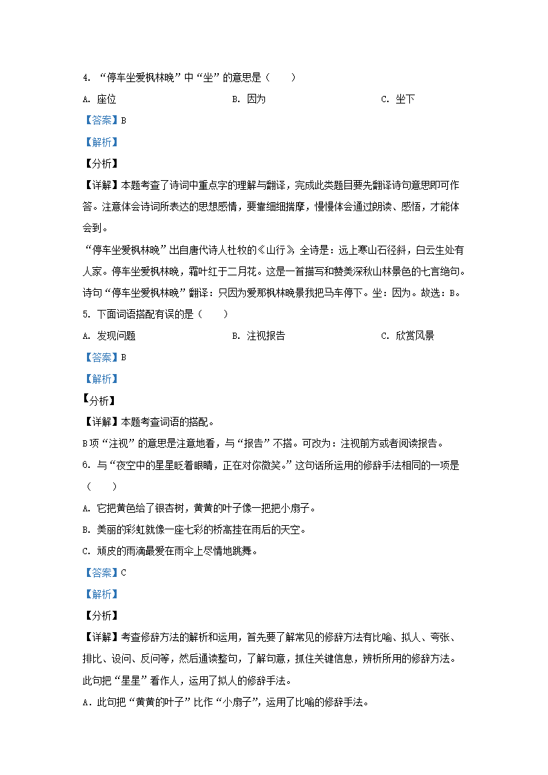 - 2020-2021學(xué)年天津市部分區(qū)小學(xué)三年級上冊語文期中試題及答案