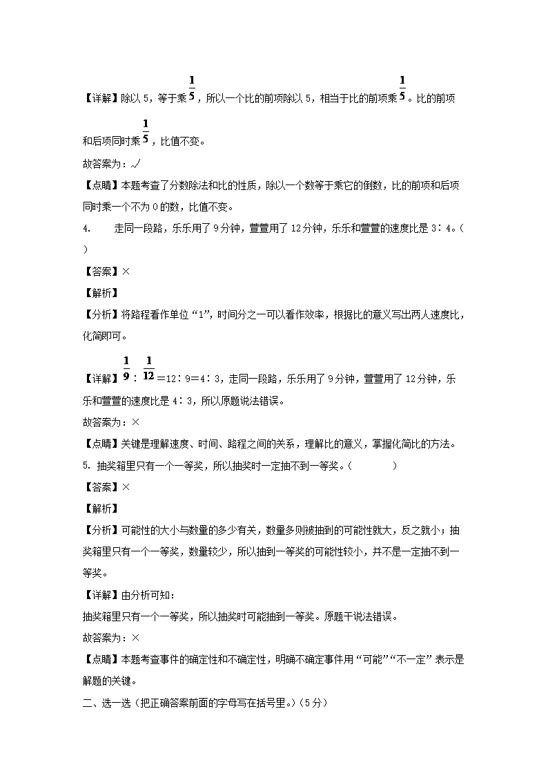 - 查看小學(xué)六年級(jí)全部真題>>