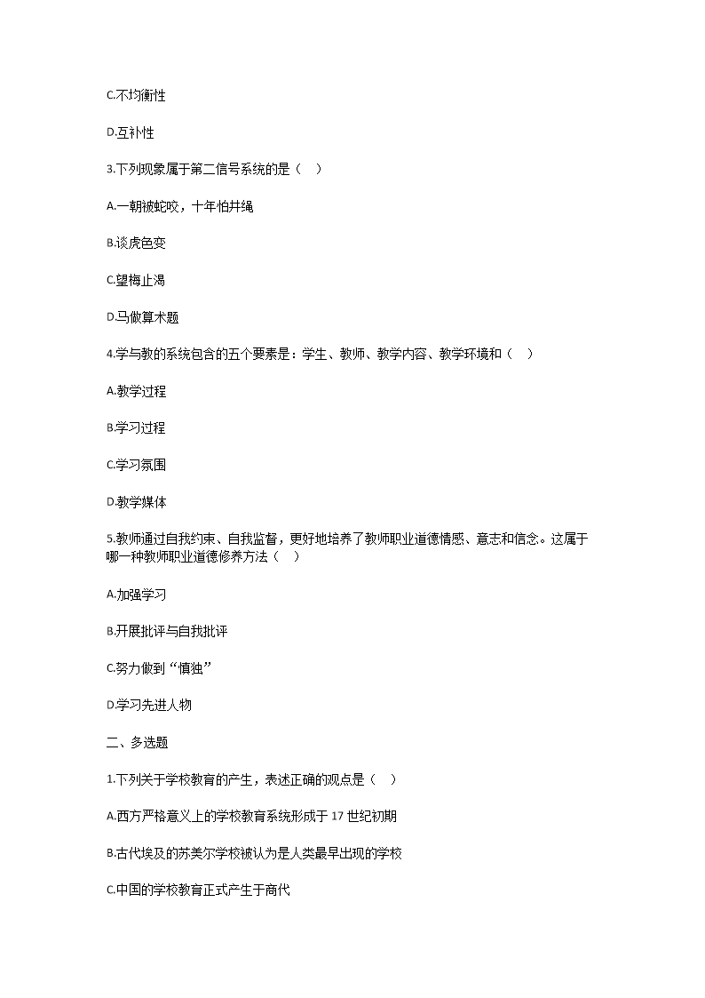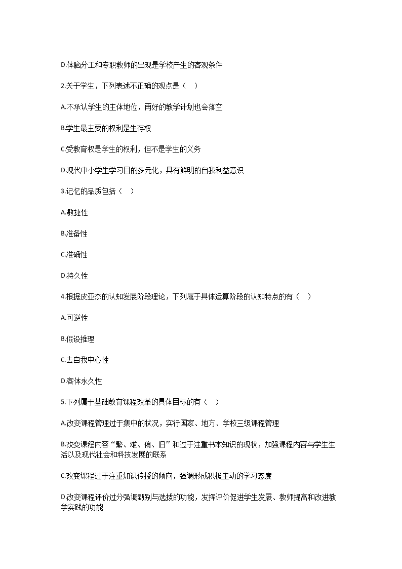 【文檔預(yù)覽】 無憂考網(wǎng)整理發(fā)布2025年四川特崗教師招聘考試教育理論基礎(chǔ)試卷及答案(Word版),前五頁預(yù)覽如下: