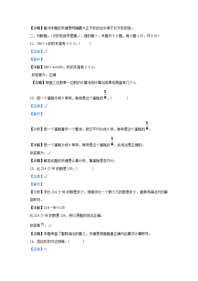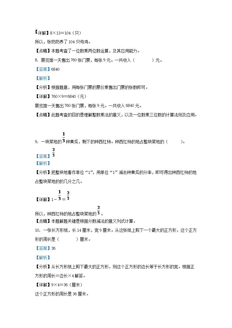 - 2021-2022學(xué)年天津市部分區(qū)小學(xué)三年級上冊數(shù)學(xué)期末試題及答案