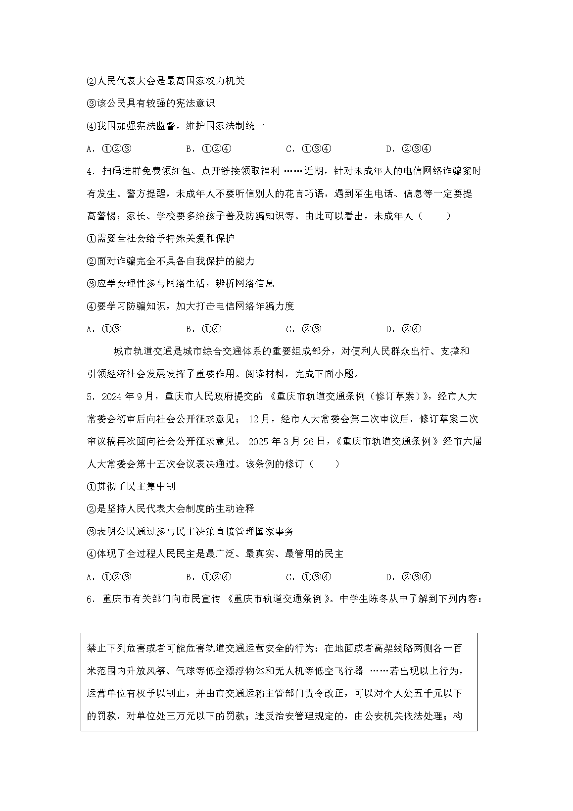 【文檔名稱】 2025年重慶中考道德與法治試題及答案(Word版).doc