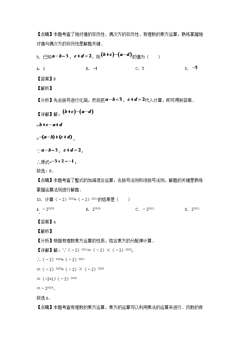 - 2021-2022學(xué)年廣東廣州七年級(jí)上冊(cè)數(shù)學(xué)期中試卷及答案