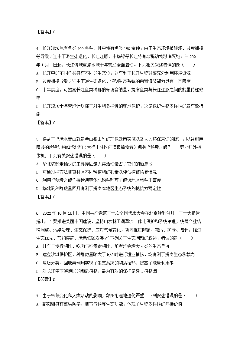 - 2021-2022學(xué)年江蘇連云港高二下學(xué)期生物期末考試題及答案