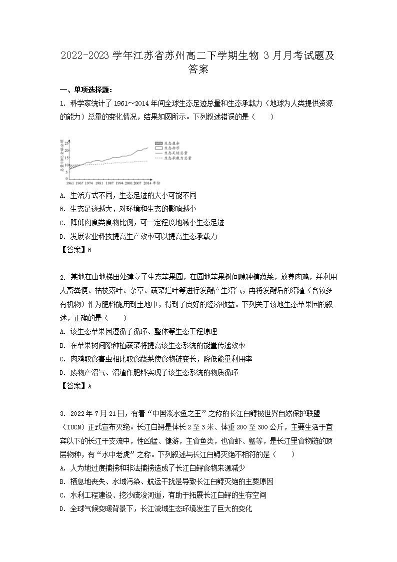 時(shí)間:2025-06-24 17:43:00 來(lái)源:無(wú)憂(yōu)考網(wǎng) [字體:小 中 大]【文檔名稱(chēng)】 2022-2023學(xué)年江蘇省蘇州高二下學(xué)期生物3月月考試題及答案(Word版).doc