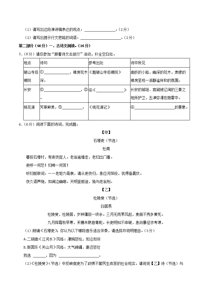 - 2023-2024學年山東省濱州市濱城區(qū)八年級下學期期末語文試題及答案